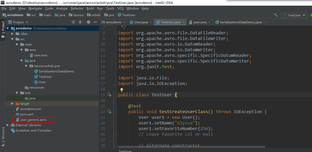 执行序列化程序后,会在项目的同级目录下生成avro数据