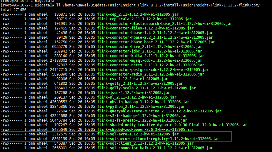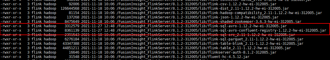 cp /opt/huawei/Bigdata/FusionInsight_Flink_8.1.2/install/FusionInsight-Flink-1.12.2/flink/opt/flink-sql-avro*.jar /opt/huawei/Bigdata/FusionInsight_Flink_8.1.3/install/FusionInsight-Flink-1.12.2/flink/lib