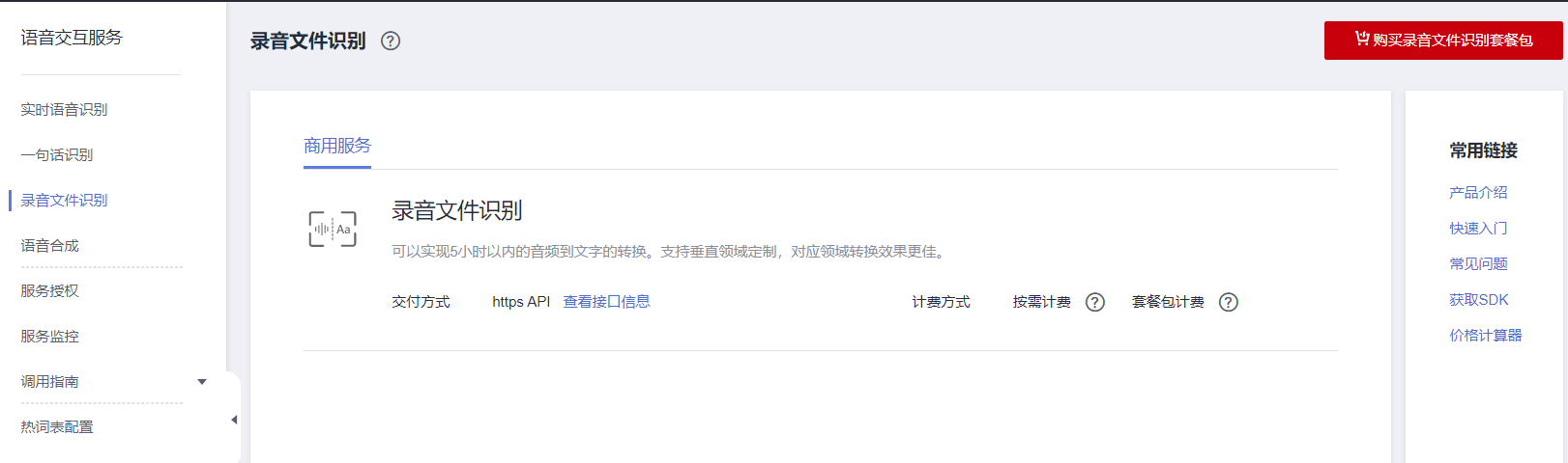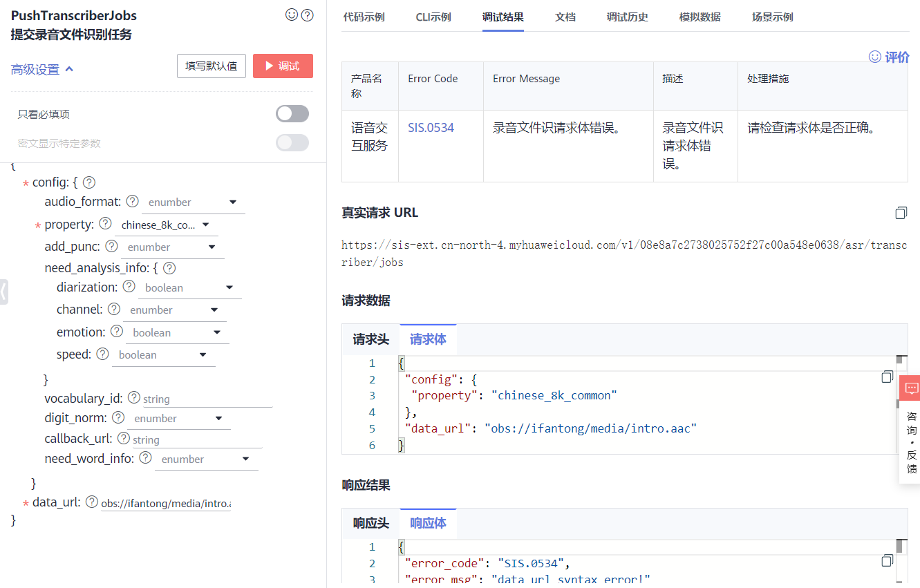 这里我想试用一下录音文件识别。进入到SIS控制台,