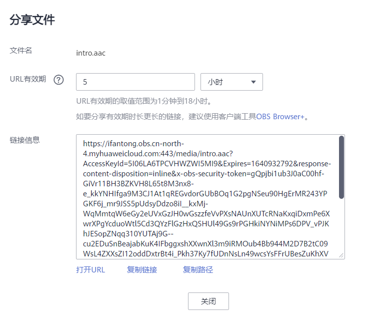 在OBS分享为一个HTTPS的URL资源吧,点复制链接,然后再次调用API: