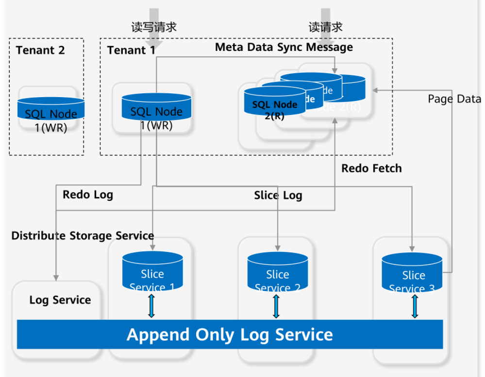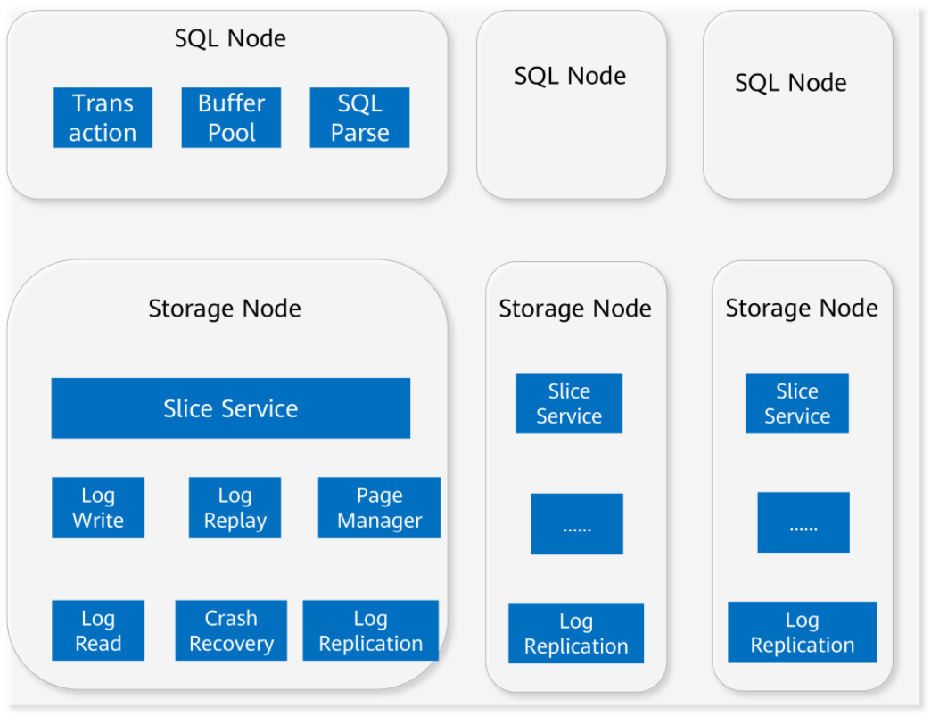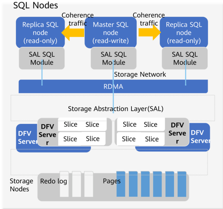 - Slice 服务,单数据库可以分配多个 Slice,访问隔离,存储和处理日志记录,维护和重构数据页,服务数据页读请求。