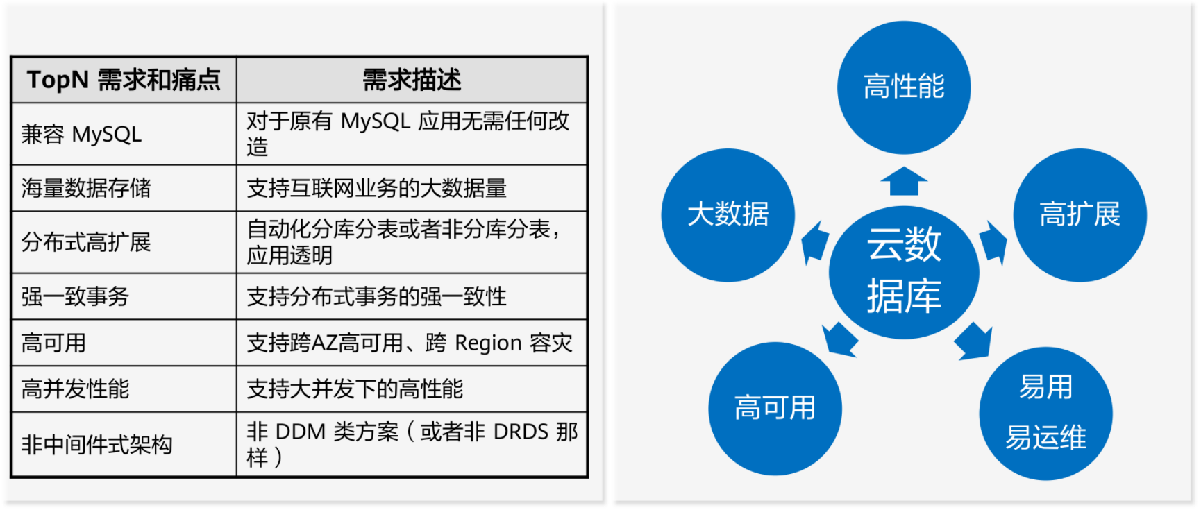综上所述,客户需要的是一款高性能、高扩展、易用、易运维、高可用、大数据的云数据库。