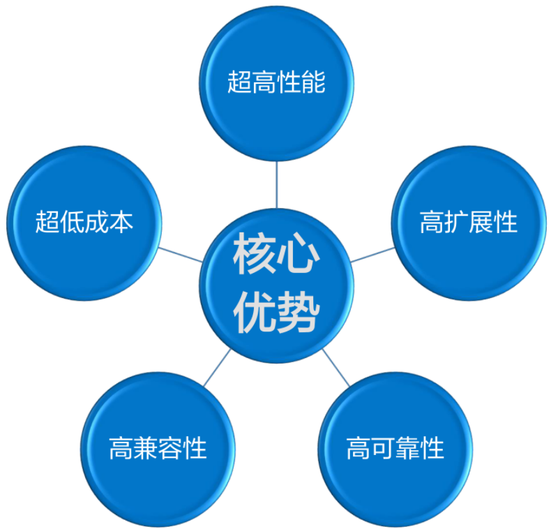 核心优势包括,超高性能,高扩展性,高可靠性,高兼容性,超低成本。