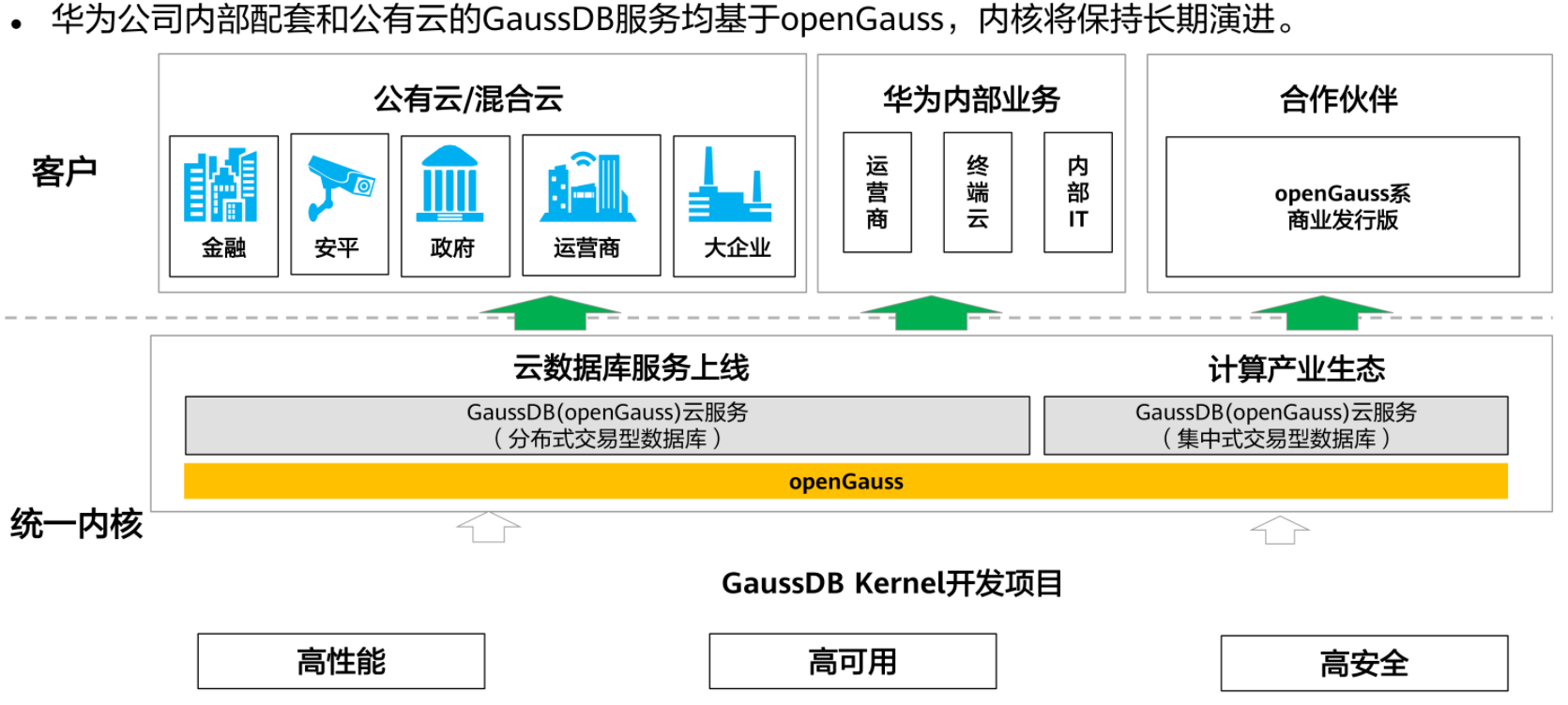 - 内部自用孵化阶段 -> 联创产品化阶段 -> openGauss 集中式版本开源