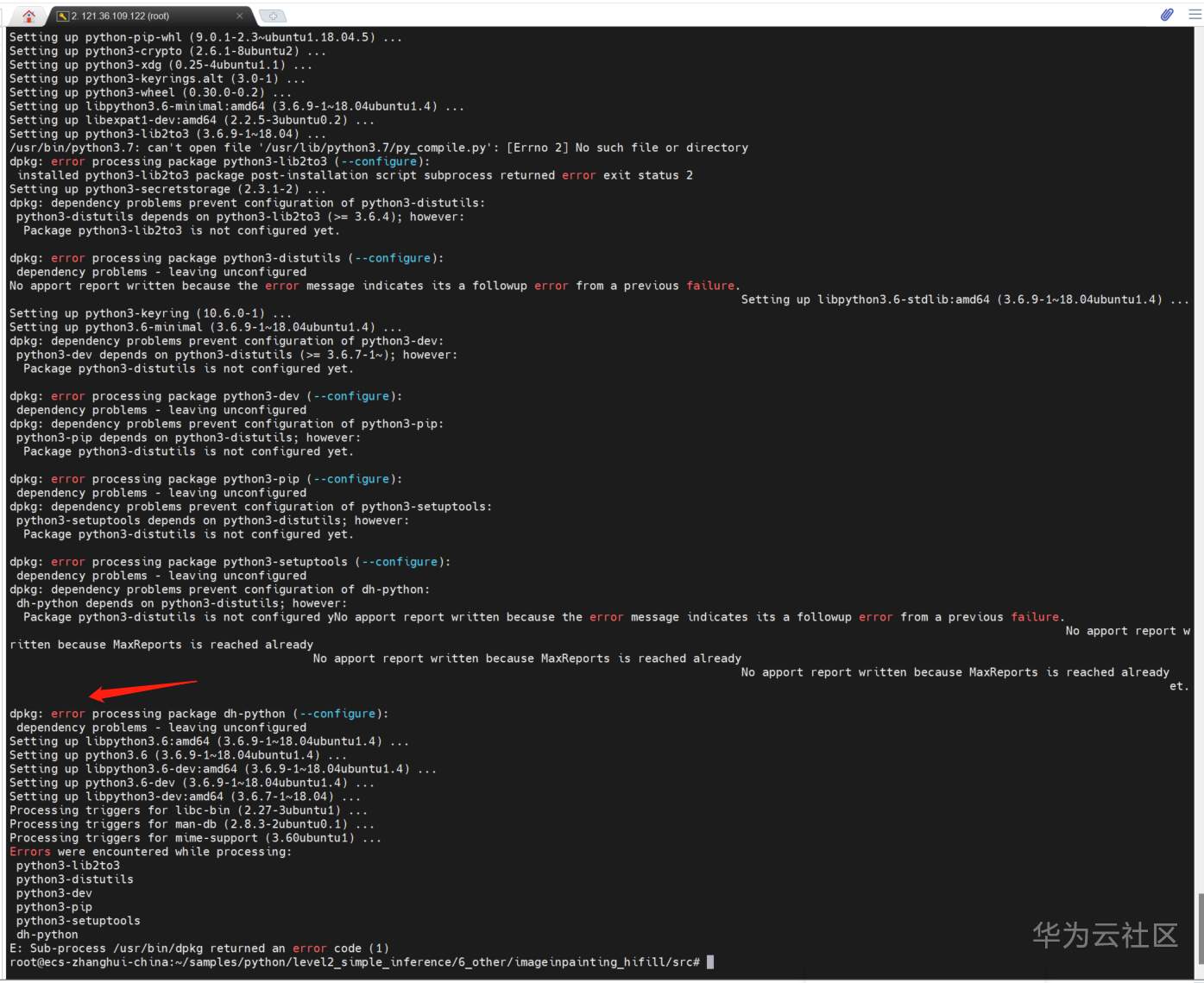 果然出现了dpkg错误: