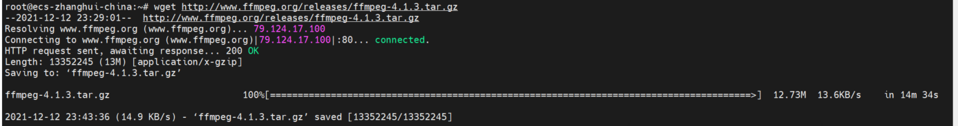 wget http://www.ffmpeg.org/releases/ffmpeg-4.1.3.tar.gz