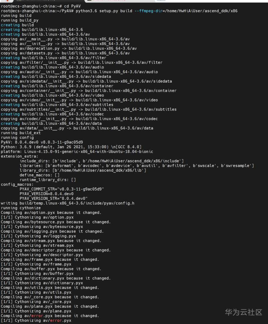 python3.6 setup.py build --ffmpeg-dir=/home/HwHiAiUser/ascend_ddk/x86