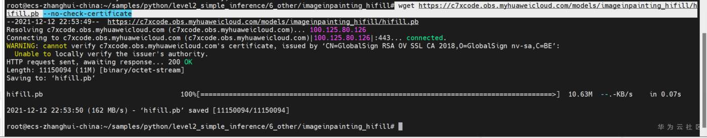 wget https://c7xcode.obs.myhuaweicloud.com/models/imageinpainting_hifill/hifill.pb --no-check-certificate