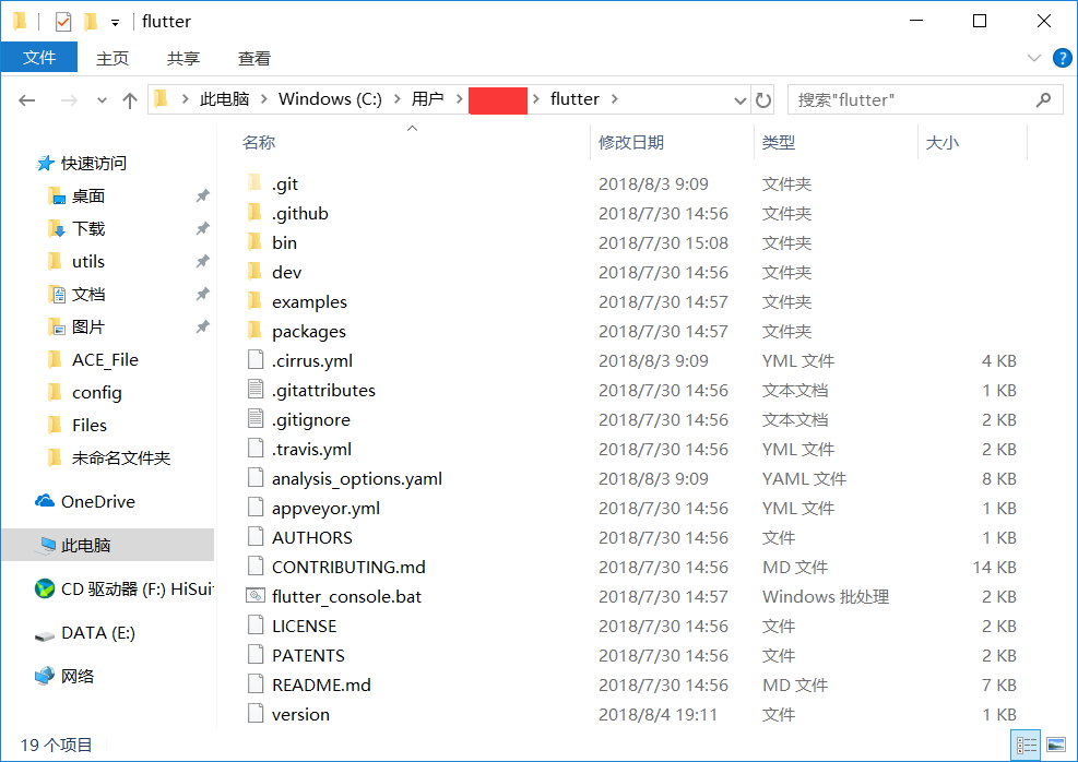 确保 Flutter 和 Dart 插件安装成功,【Mac 环境】根据命令行可查找 Flutter 目录,终端 -> export $PATH 查看各配置项目录;【Windows 环境】相对容易可以在文件夹中直接找到 Flutter 路径,如图: