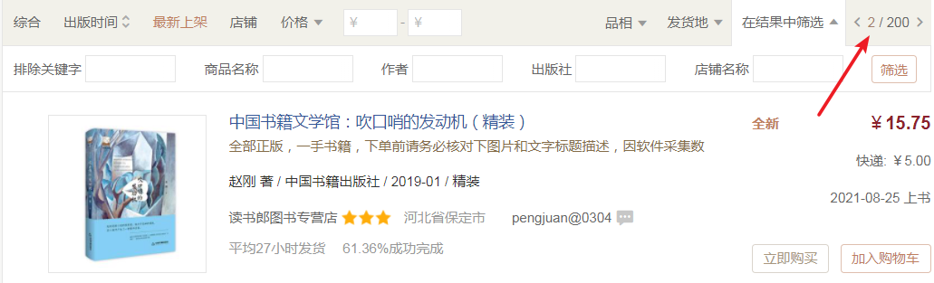 - 提取目标数据,例如图书名称,作者,出版社,出版时间,店铺名称等信息。