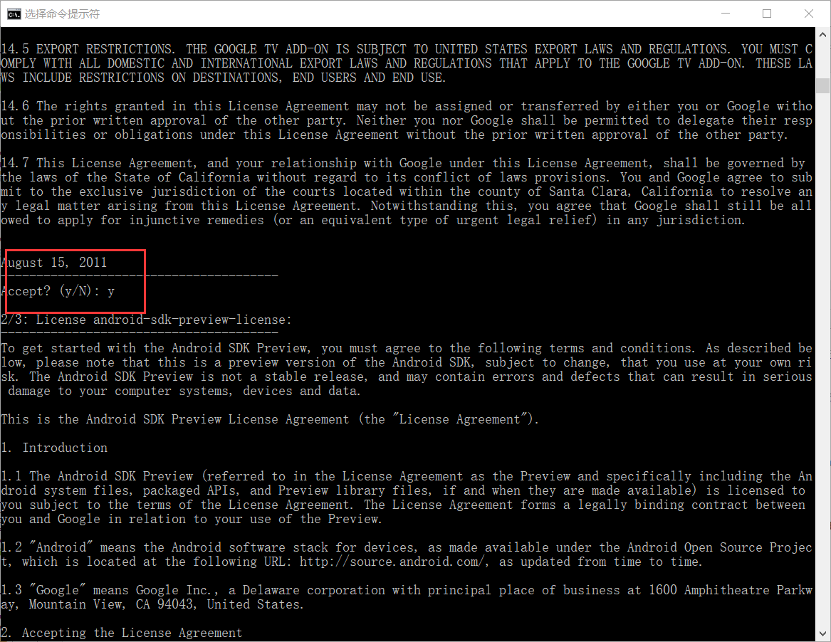 cmd -> android list target 检测 Android SDK,如图: