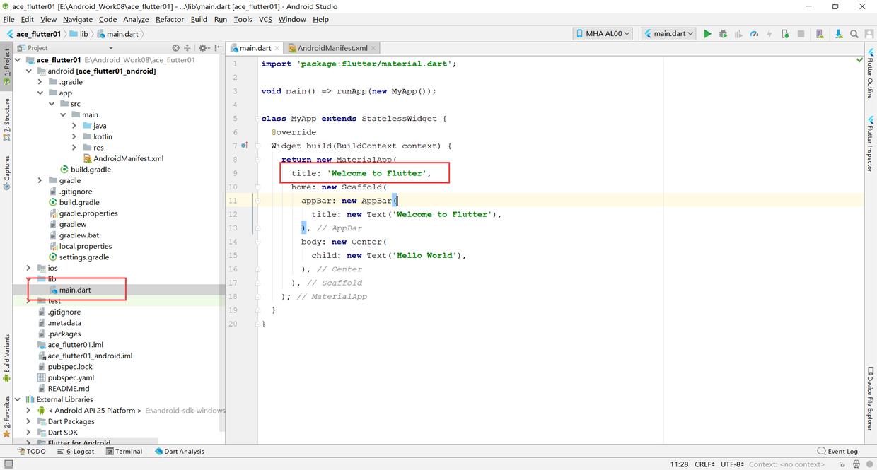 2. Flutter->main.dart 中默认有两个 title,小菜理解为第一个为应用内名称,第二个相当于 Activity 页面标题名称。
