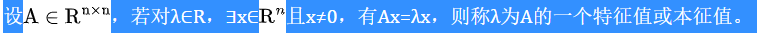 Ax=λx等价于(λE-A)x=0。它是n个n元一次齐次方程组,它有非零解的充要条件是系数行列式|λE-A|=0。