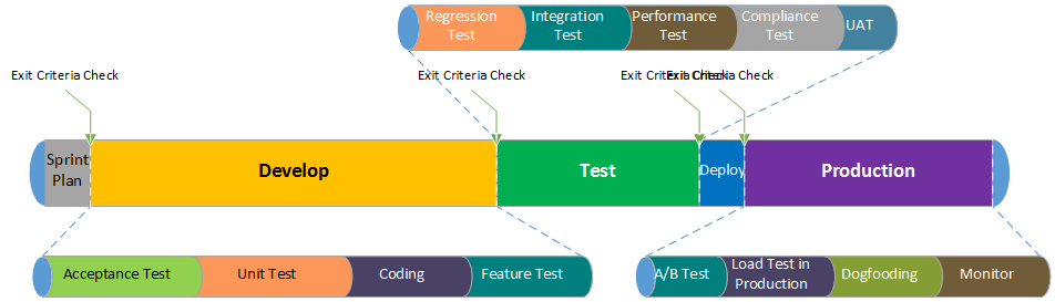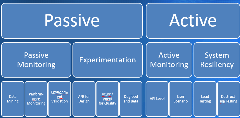 测试右移,开展线上测试。在真实环境中进行测试,有效补充研发环境无法开展的测试场景。以业界在线测试开展较好的微软公司为例,在线测试可以进行如下维度的划分: