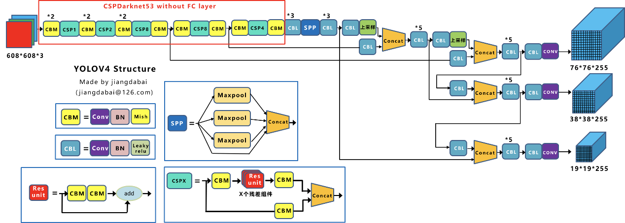 YOLO算法目前已经迭代到v5版本,本项目使用的是YOLOv4,下面我们来看看它的结构。