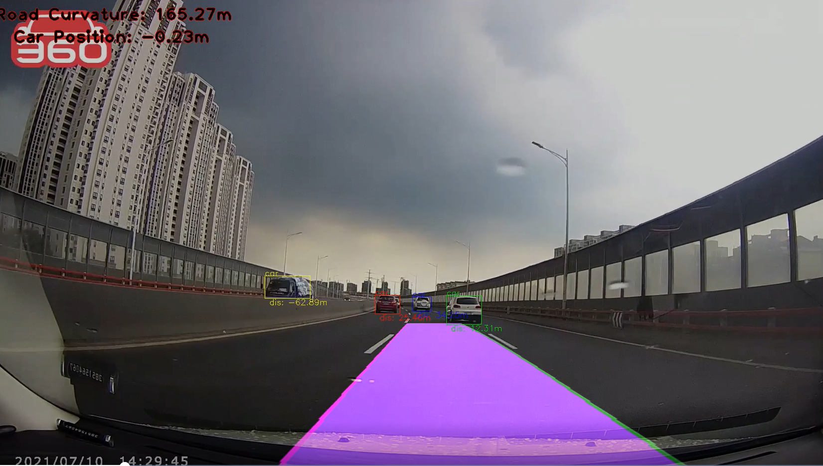 当然,真正意义上的辅助驾驶系统远比这个AI应用更复杂,下面主要介绍如何借助AscendCL编程接口对输入视频进行预测推理,从而实现对车辆及车道线的智能检测。