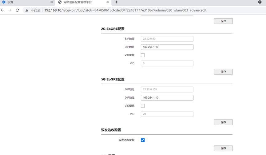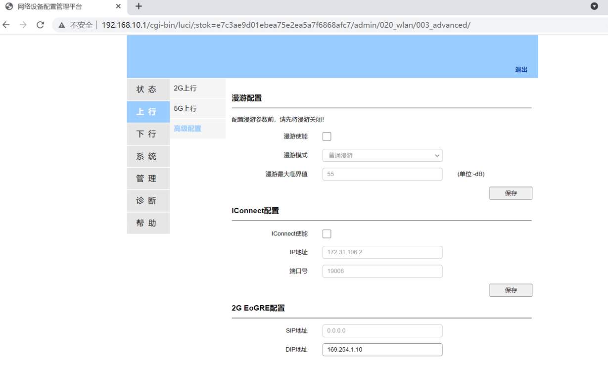 点击“上行”->“高级配置”,下滑可以看到EoGRE配置,点击保存。不需要配置SIP、DIP和VID这些。