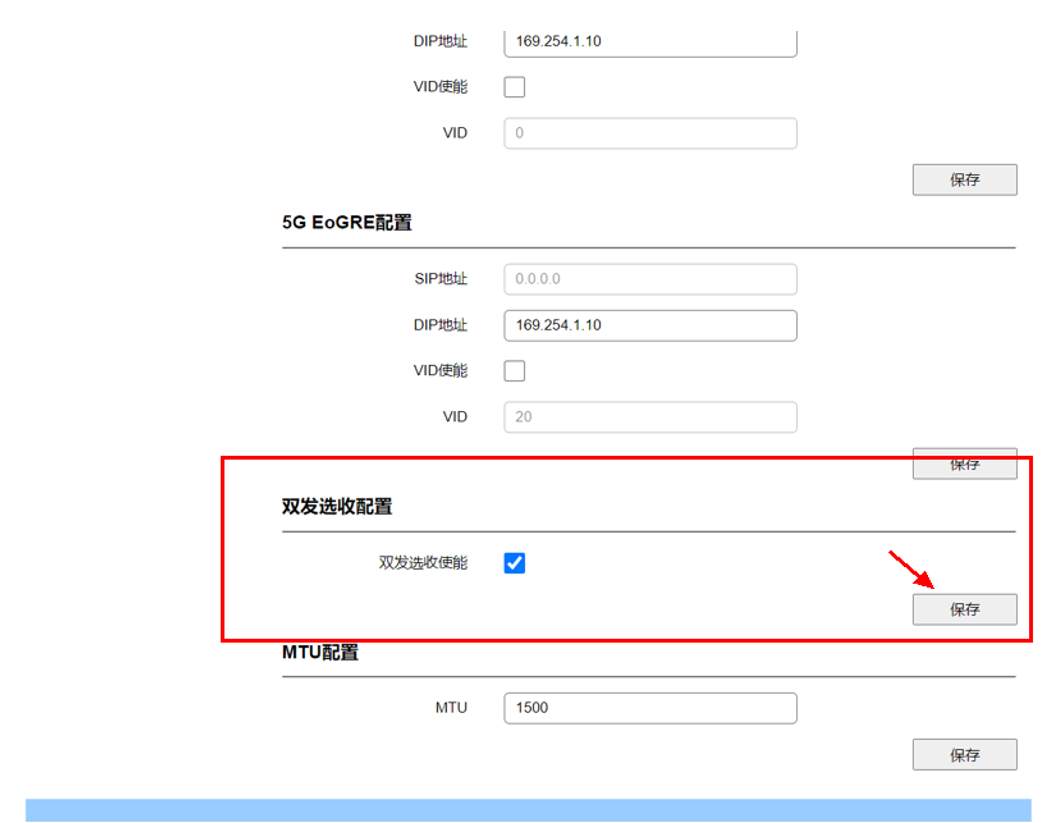 CPE登陆成功后,点击“上行”->“高级配置”,下滑可以看到双发选收配置,点击使能
