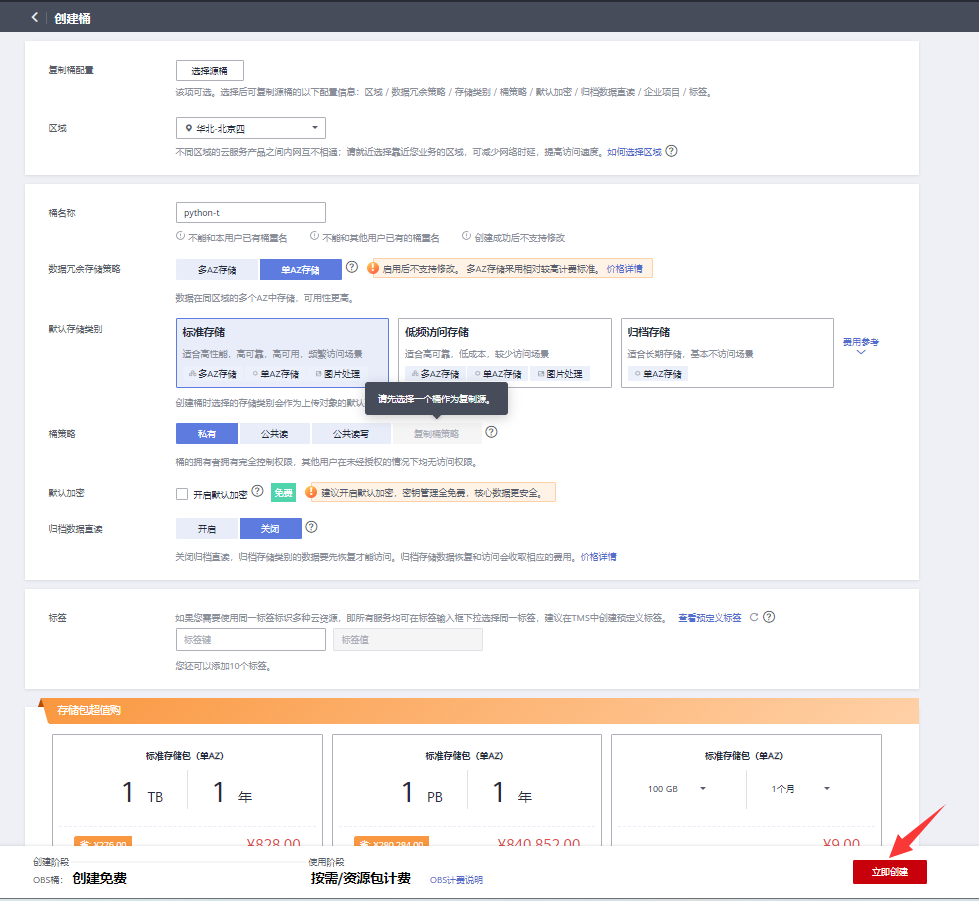 点击右下角“立即创建”,如下图所示: