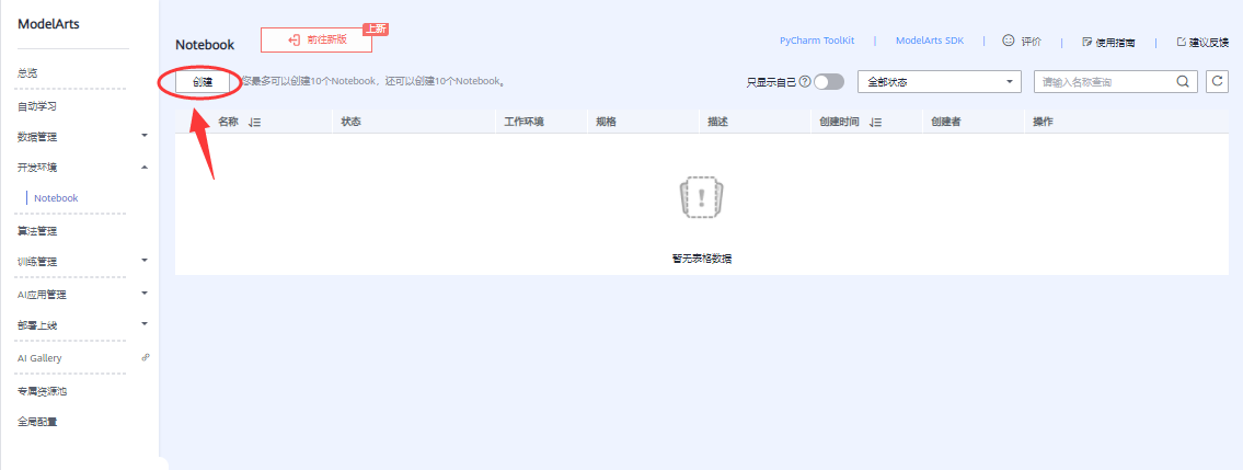 进入Notebook创建页面。