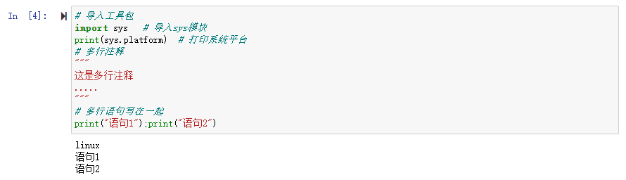 print("语句1");print("语句2")