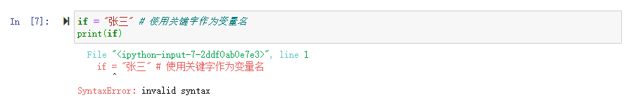 if = "张三" # 使用关键字作为变量名