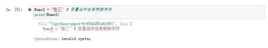 Name$ = "张三" # 变量名中含有特殊字符