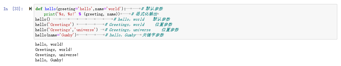hello('Greetings','universe') # Greetings,universe 位置参数