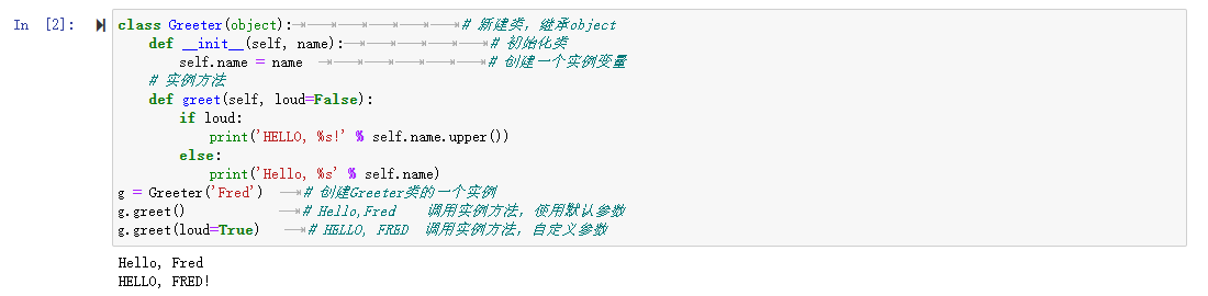 g.greet(loud=True) # HELLO, FRED 调用实例方法,自定义参数