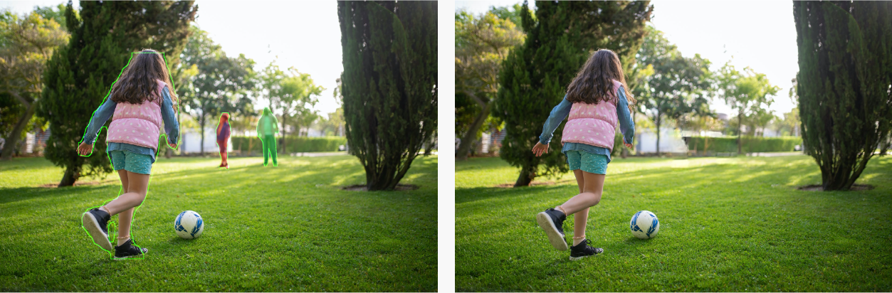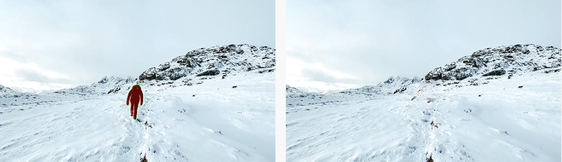 指定好待消除的mask区域后,还需要根据背景对消除的区域进行填充,最终生成自然清晰的图片。
