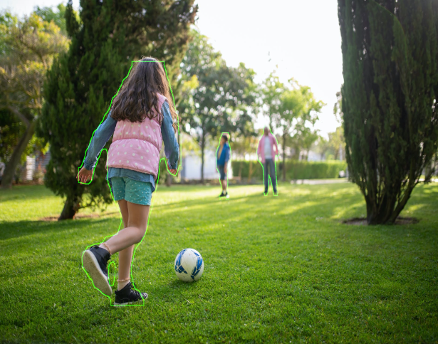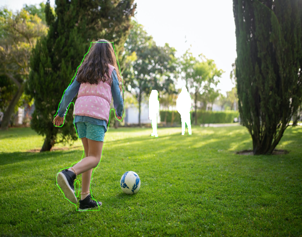 点选模式下,消除路人甲的关键是如何智能地将原图进行实例分割,借助实例分割算法MaskRCNN便能自动确定图片中各个目标的位置和类别,并且标识出目标物体的像素位置,画出物体轮廓(即mask区域)。