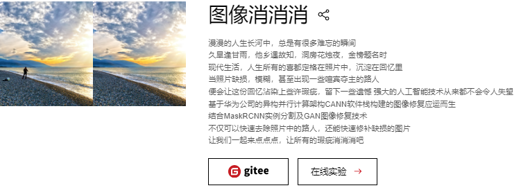 救兵已来,接下来便是见证奇迹的时刻:https://www.hiascend.com/zh/developer/mindx-sdk/imageInpainting