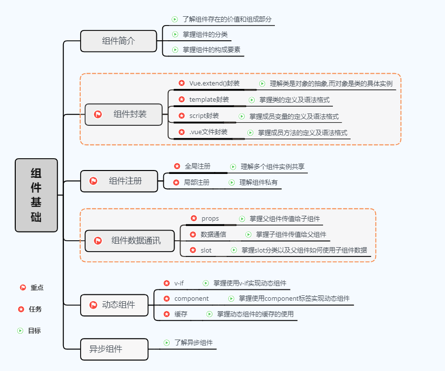 • 组件的分类:全局组件,局部组件,动态组件和异步组件。