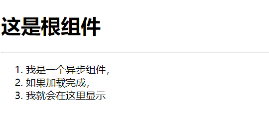 30 <async-comp :list="['我是一个异步组件,','如果加载完成,','我就会在这里显示']"></async-comp>