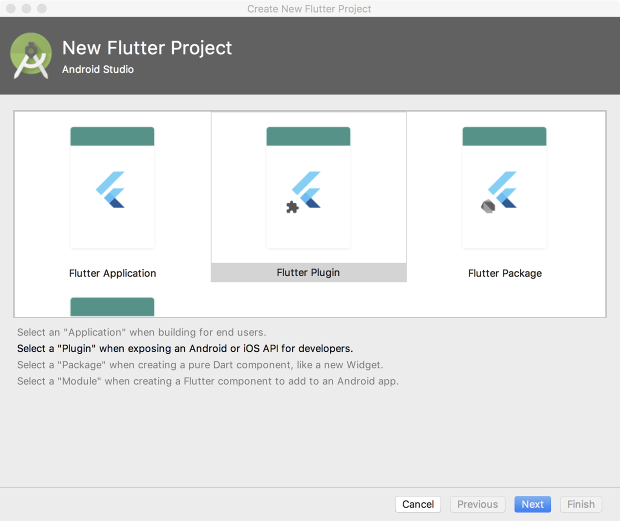 File -> New -> New Flutter Project… -> Flutter Plugin 实现方式与 Android 无异,主要是在 lib 中实现功能,并在 example 中实现基本的调用,之后双传到 git 上;