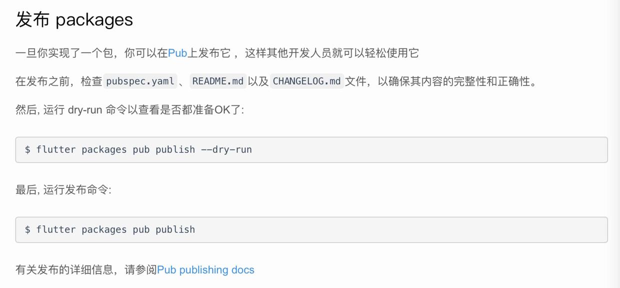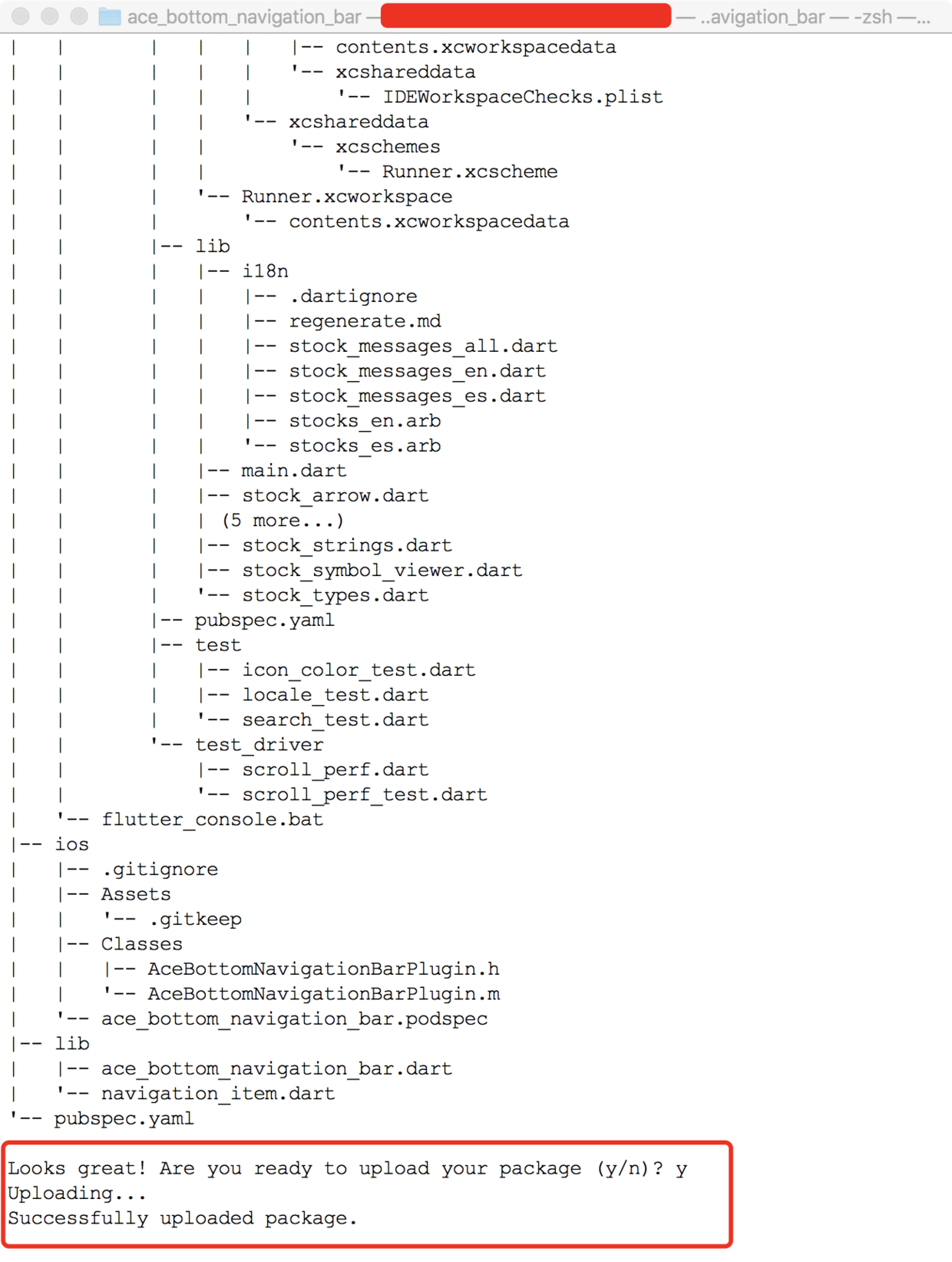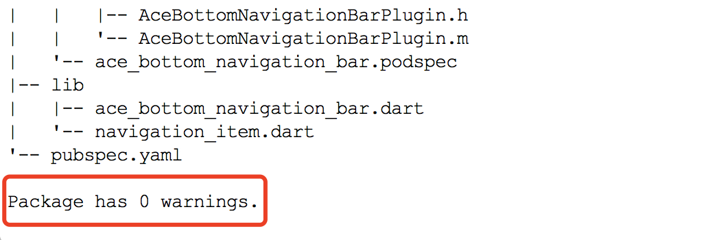 在执行第一步 flutter packages pub publish --dry-run 遇到的 Warning 是基本信息不完整以及包大于 100M,于是在 pubspec.yaml 文件中补充 author/homepage 信息,注意 author 中建议添加邮箱,之后删除无用的缓存文件;再次执行即可。