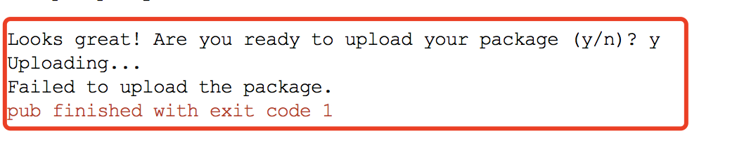 在执行第二步 flutter packages pub publish 遇到 Failed to upload the package. 因为没有错误提醒,这可愁坏小菜了,不知该从何处入手;