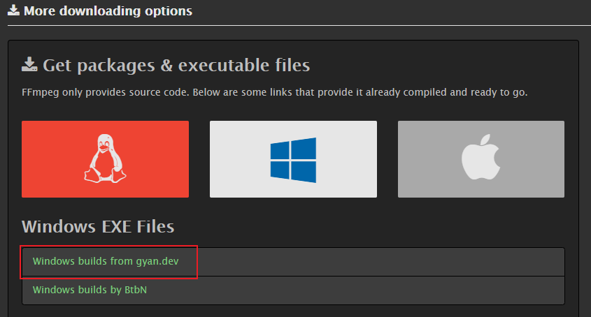 打开其下载页面进行下载,下载按钮选择 windows builds from gyan.dev ,在新打开的页面中,在参考下述链接。
