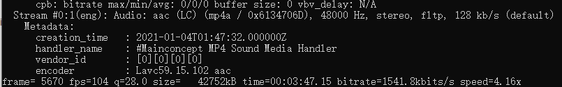-threads 0自动选择最大线程数;-max_muxing_queue_size 1024:缓存大小;-ar freq: 设置音频采样率。