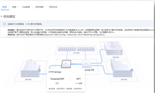 系统性能分析:基于鲲鹏服务器的性能分析工具,针对多个专项分析系统性能状况,识别系统性能瓶颈,并给出针对性的多维度优化建议。