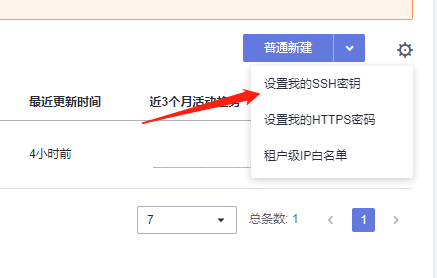 然后点击右上角的齿轮,然后选择"设置我的SSH密钥"