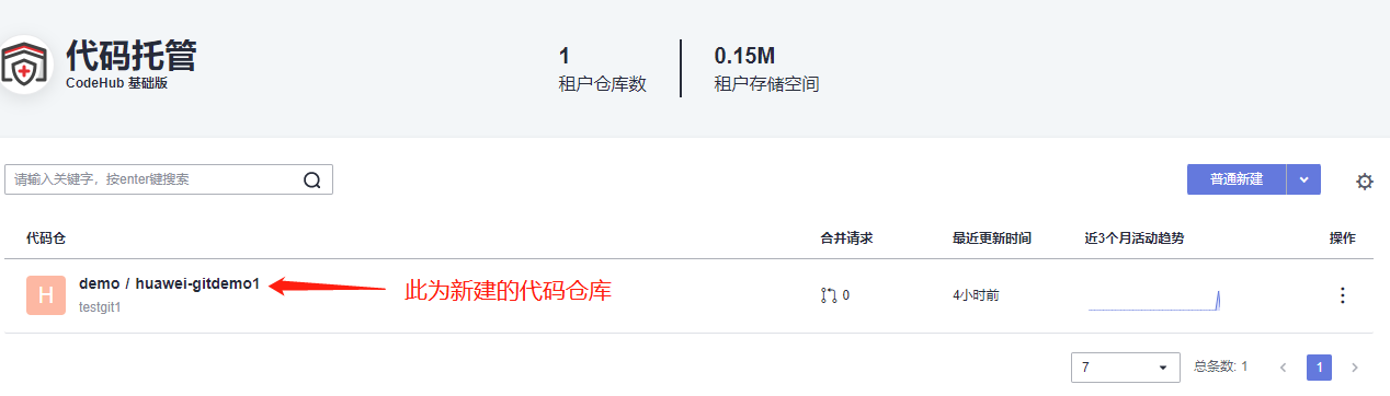 按照平台提示进行创建代码仓库,完成创建后如图所示