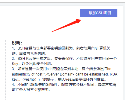 点击右上角的"添加SSH密钥"