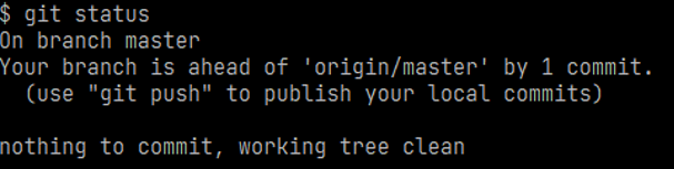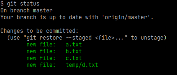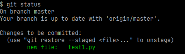 再次查看状态显示文件已经提交,等待推送至远端仓库