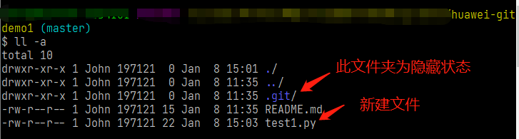 打开git bash进入git文件夹查看