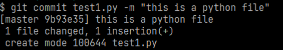 将修改后的test1.py文件加入暂存区并做commit提交操作