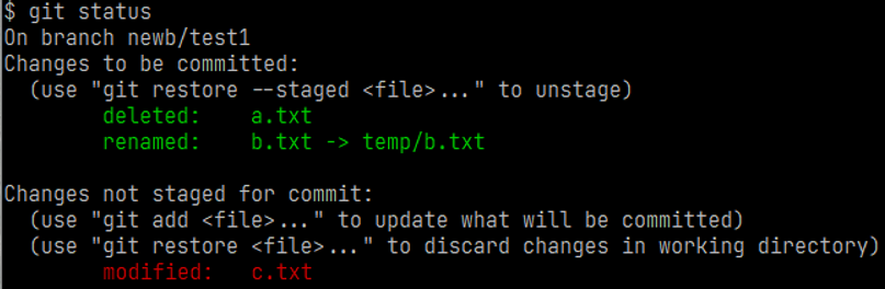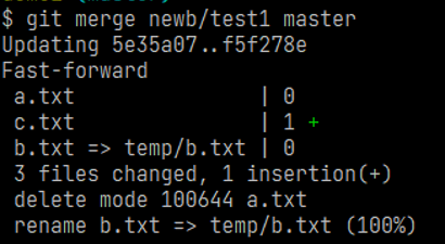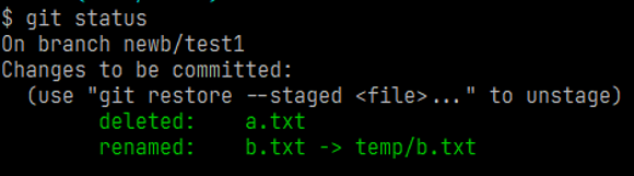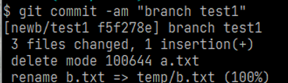 在newb/test1下删除a.txt文件,将b.txt移动到temp文件夹下