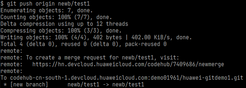 将新建的newb/test1分支推送到远端仓库