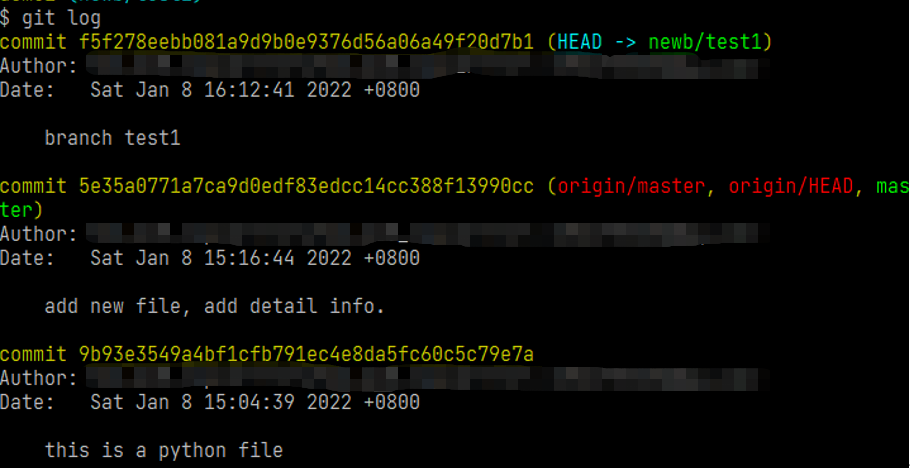 查看newb/test1分支上的日志