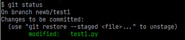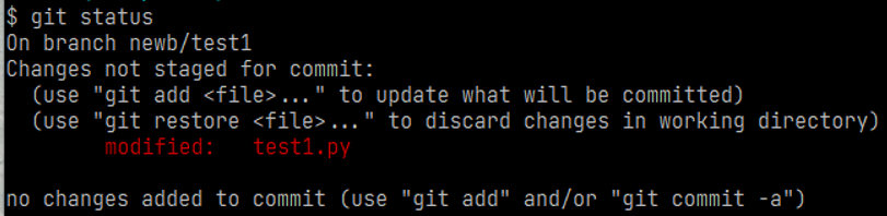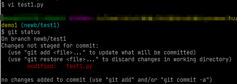 修改分支下的test1.py文件并使用git status查看状态